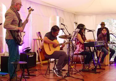 Presentaciones en vivo musicales grupales y exposición de obras de arte